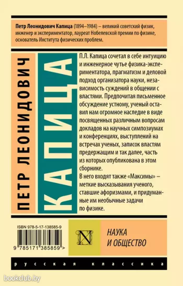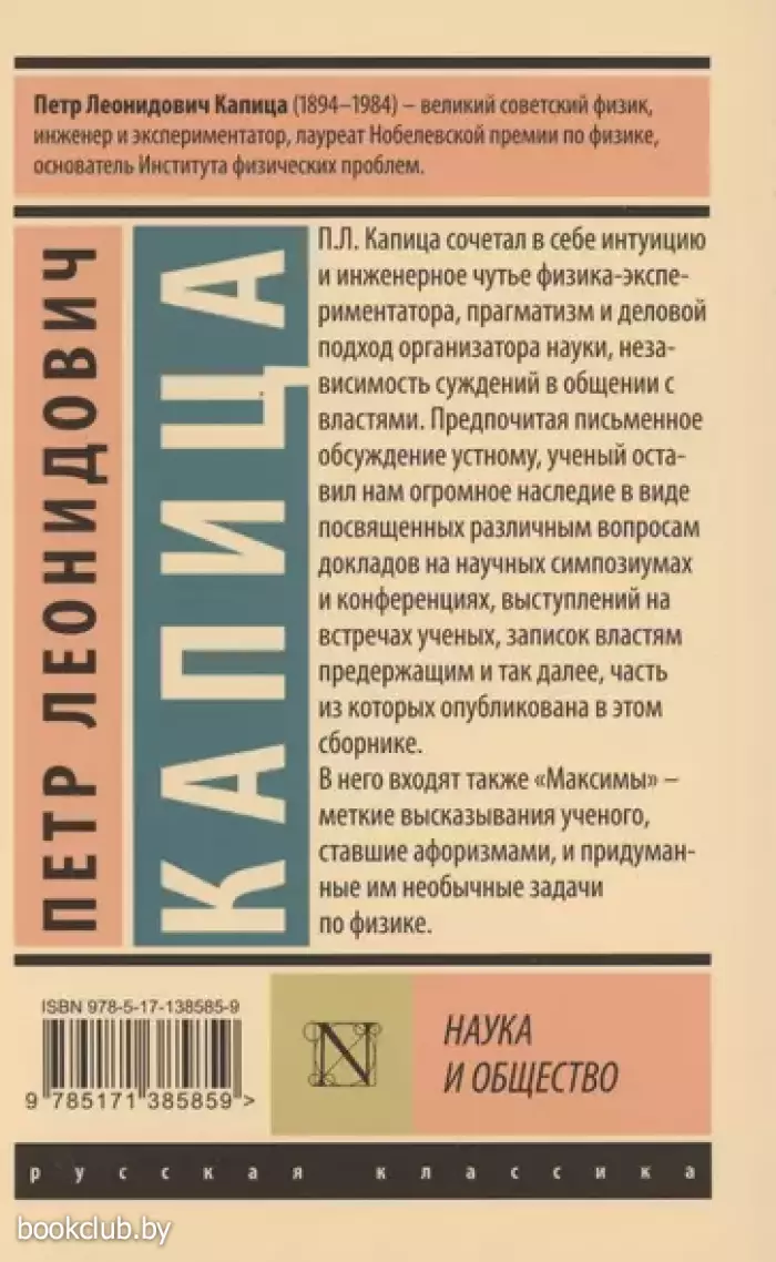 П.Л. Капица сочетал в себе интуицию и инженерное чутье физика-экспериментатора, прагматизм и деловой подход организатора науки, независимость суждений в общении с властями. Предпочитая письменное обсуждение устному, ученый оставил нам огромное наследие в виде посвященных различным вопросам докладов на научных симпозиумах и конференциях, выступлений на встречах ученых, записок властям предержащим и так далее, часть из которых опубликована в этом сборнике. В него входят также "Максимы" — меткие высказывания ученого, ставшие афоризмами, и придуманные им необычные задачи по физике.