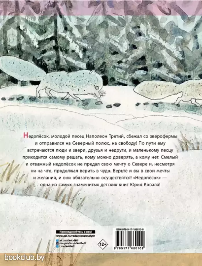Недопёсок, молодой песец Наполеон Третий, сбежал со зверофермы и отправился на Северный полюс, на свободу! По пути ему встречаются люди и звери, друзья и недруги, и маленькому песцу приходится самому решать, кому можно доверять, а кому нет. Смелый и отважный недопёсок не предал свою мечту о Севере и, несмотря ни на что, продолжал верить в чудо. Верьте и вы в свои мечты и желания, и они обязательно осуществятся! «Недопёсок» — одна из самых знаменитых детских книг Юрия Коваля!