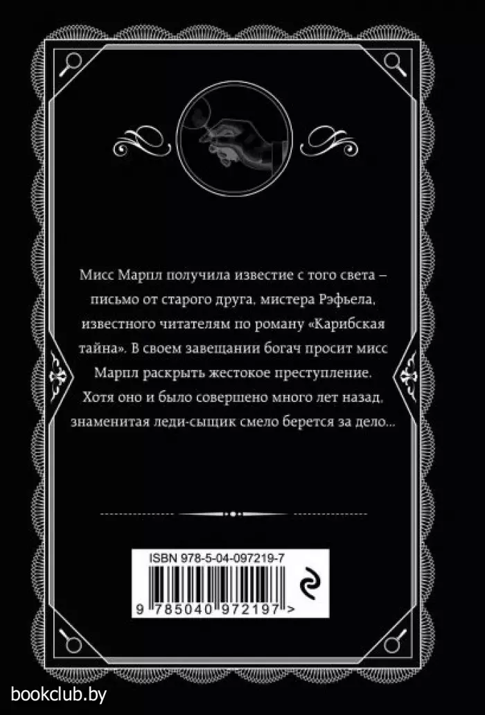Мисс Марпл получила известие с того света - письмо от старого друга, мистера Рэфьела, известного читателям по роману «Карибская тайна». В своем завещании богач просит мисс Марпл раскрыть жестокое преступление. Хотя оно и было совершено много лет назад, знаменитая леди-сыщик смело берется за дело...