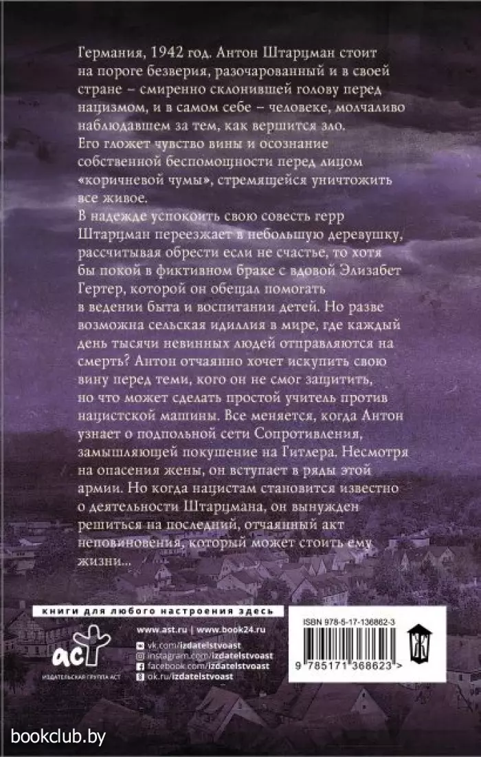 Германия, 1942 год. Антон Штарцман, бывший францисканский монах, теряет все: свою обитель, школу, где преподавал, веру в людей и в собственную страну. Он решает переехать в маленькую деревушку Унтербойинген, где женится на вдове Элизабет Гертер. Этот брак, пускай и лишенный чувств, шанс для обоих спастись. Элизабет не может в одиночку обеспечить своих троих детей, а для Антона забота о них – попытка искупить вину перед теми, кого он не смог защитить. Но как жить в мире, изуродованном нацистским режимом? Бессилие мучает Антона.
