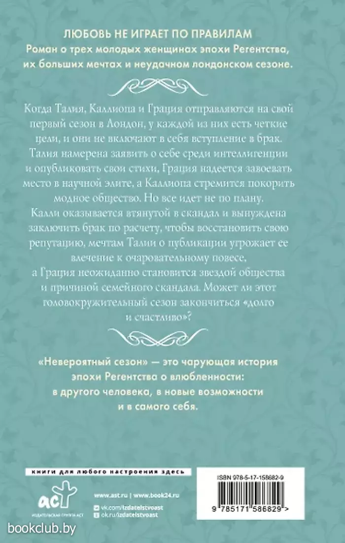 Для поклонников сериала «Бриджертоны». Роман о трех молодых женщинах эпохи Регентства, их больших мечтах и неудачном лондонском сезоне. Когда Талия, Каллиопа и Грация отправляются на свой первый сезон в Лондон, у каждой из них есть четкие цели, и они не включают в себя вступление в брак. Талия намерена заявить о себе среди интеллигенции и опубликовать свои стихи, Грация надеется завоевать место в научной элите, а Каллиопа стремится покорить модное общество. Но все идет не по плану. Калли оказывается втянутой в скандал и вынуждена заключить брак по расчету, чтобы восстановить свою репутацию, мечтам Талии о публикации угрожает ее влечение к очаровательному повесе, а Грация неожиданно становится звездой общества и причиной семейного скандала. Может ли этот головокружительный сезон закончиться «долго и счастливо»?