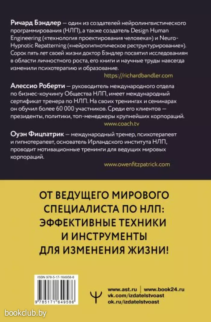 Хотите изменить свою жизнь к лучшему? Вам необходимо освоить мощный инструмент, который поможет вам взять под контроль свои мысли, поведение и достижения. Эта книга, написанная экспертами в области НЛП, предлагает уникальные советы и упражнения, которые помогут вам стать лучшей версией себя.