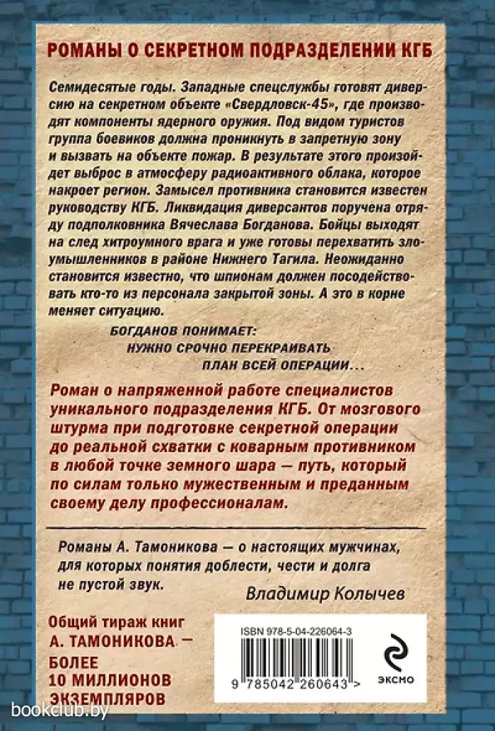 «Романы А. Тамоникова — о настоящих мужчинах, для которых понятия доблести, чести и долга — не пустой звук». — В. Колычев