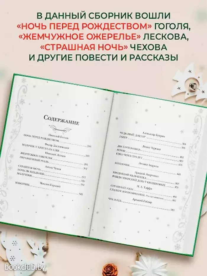 — На страницах этого сборника — «Ночь перед Рождеством» Николая Гоголя, «Страшная ночь» Антона Чехова, «Тапёр» Александра Куприна и другие повести и рассказы.