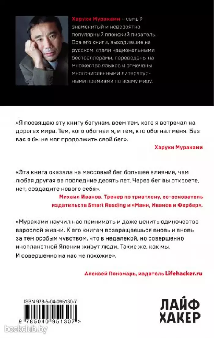 «Мураками научил нас принимать и даже ценить одиночество взрослой жизни. К его книгам возвращаешься вновь и вновь за тем особым чувством единения с совершенно инопланетной Японией, в которой живут люди. Такие же, как мы. И совершенно на нас не похожие». — Алексей Пономарь, издатель Лайфхакера (Лого) ЛАЙФХАКЕРА