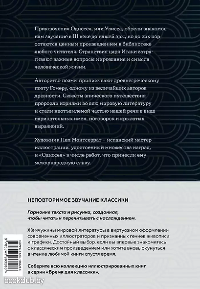 Удивительные работы испанского художника Пепы Монтсеррата добавляют яркие детали и образность к захватывающим событиям гомеровского текста. Классический перевод на русский язык выполнен Василием Жуковским.