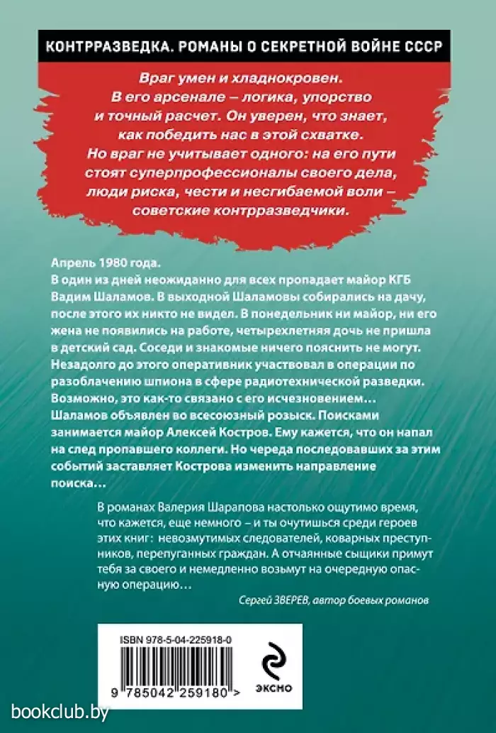 «В романах Валерия Шарапова настолько ощутимо время, что кажется, еще немного, и ты очутишься среди героев этих книг — невозмутимых следователей, коварных преступников, перепуганных граждан. А отчаянные сыщики примут тебя за своего и немедленно возьмут на очередную опасную операцию…» — Сергей ЗВЕРЕВ, автор боевых романов