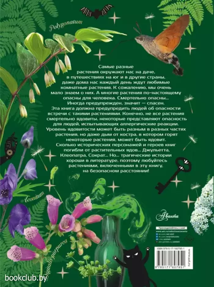Если вы любите биологию и интересуетесь растениями, то вам будет очень интересно читать эту книгу. Она посвящена редкой теме – ядовитым растениями. Таких растений в мире очень много, поэтому автор — кандидат биологических наук Ирина Михайловна Пескова — предупреждает об их опасности и призывает к осторожности, которую должен соблюдать каждый человек, сталкивающийся с подобными растениями. Они известны с древности, применяются в народной и официальной медицине, обросли легендами и преданиями, но не стали менее опасными для людей. Предупрежден — значит вооружен. Будьте осторожны с растениями, не относитесь к ним легкомысленно. Знания, почерпнутые в книге, пригодятся как в путешествиях по нашей стране и другим странам мира, так и в выращивании комнатных растений. 4-ая сторонка Самые разные растения окружают нас на даче, в путешествиях на юг и в другие страны, даже дома нас каждый день ждут любимые комнатные растения. К сожалению, мы очень мало знаем о них. А многие растения по-настоящему опасны для человека. Смертельно опасны... Иногда предупрежден, значит, - спасен. Эта книга должна предупредить людей об опасности встречи с такими растениями. Конечно, не все растения смертельно ядовиты, некоторые представляют опасность для людей, испытывающих аллергические реакции. Уровень ядовитости может быть разным в разных частях растения, но даже дым от костра, в котором горят некоторые растения, может быть ядовит. Сколько исторических персонажей и героев книг погибли от растительных ядов... Джульетта, Клеопатра, Сократ... Но... трагические истории хороши в литературе, поэтому любуйтесь растениями, включенными в эту книгу, на безопасном расстоянии!