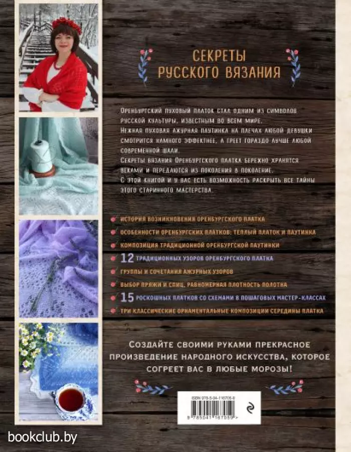 Первая в России полная практическая энциклопедия, посвященная вязанию настоящего русского Оренбургского пухового платка. Исчерпывающая информация обо всем, что касается этого произведения народного промысла, знаменитого во всем мире! Традиционные узоры и их сочетания, история возникновения, все о подходящей для платков пряже, приемы и техники вязания, а самое главное — пятнадцать уникальных авторских платков с полноразмерными схемами и инструкциями по вязанию!