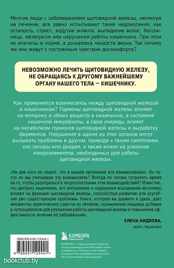 Книга «Ось щитовидка - кишечник. Как вылечить щитовидную железу, улучшив состояние кишечной микробиоты» из серии «Плюс один здоровый человек. Книги о медицине от ведущих экспертов» - станет прекрасным дополнением вашей библиотеки. Для вашего удобства при оформлении заказа по телефону назовите код товара: 416276