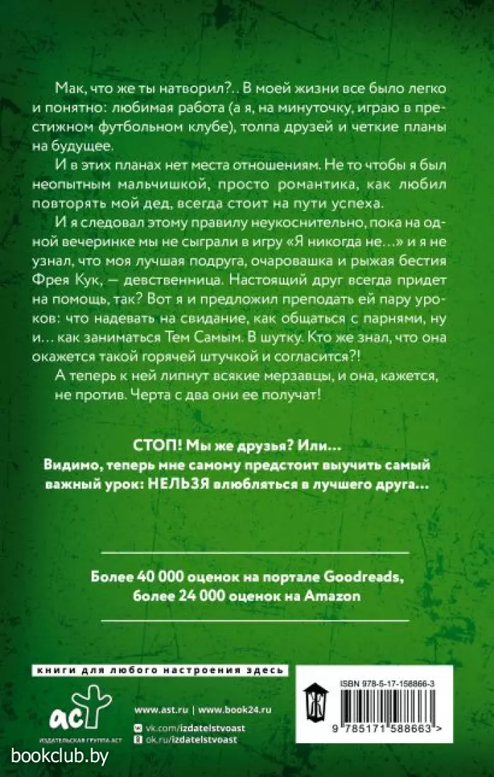 И я следовал этому правилу неукоснительно, пока на одной вечеринке мы не сыграли в игру "Я никогда не…" и я не узнал, что моя лучшая подруга, очаровашка и рыжая бестия Фрея Кук, — девственница. Настоящий друг всегда придет на помощь, так? Вот я и предложил преподать ей пару уроков: что надевать на свидание, как общаться с парнями, ну и… как заниматься Тем Самым. В шутку. Кто же знал, что она окажется такой горячей штучкой и согласится?!