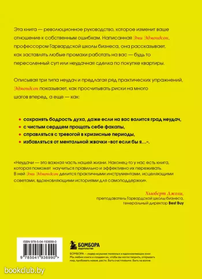 Эта книга — революционное руководство, которое изменит ваше отношение к собственным ошибкам. Написанная Эми Эдмондсон, профессором Гарвардской школы бизнеса, она рассказывает, как заставлять любые промахи работать на вас — будь то пересоленный суп или неудачная сделка по покупке квартиры.