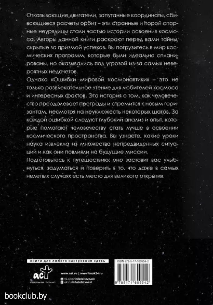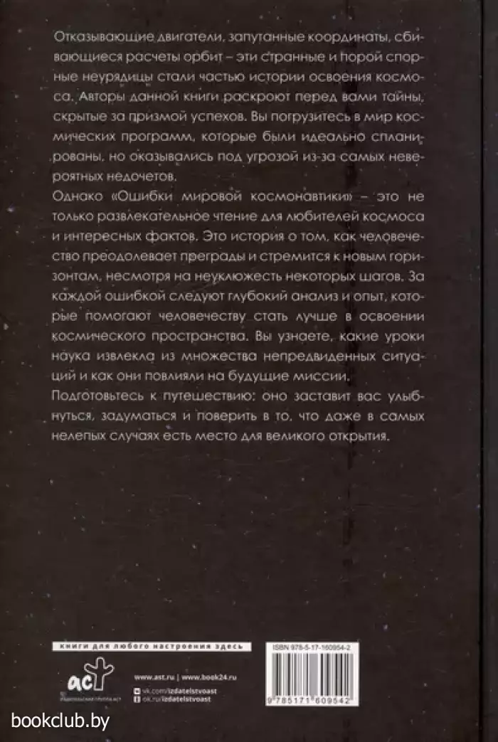 Однако «Ошибки мировой космонавтики» – это не только развлекательное чтение для любителей космоса и интересных фактов. Это история о том, как человечество преодолевает преграды и стремится к новым горизонтам, несмотря на неуклюжесть некоторых шагов. За каждой ошибкой следуют глубокий анализ и опыт, которые помогают человечеству стать лучше в освоении космического пространства. Вы узнаете, какие уроки наука извлекла из множества непредвиденных ситуаций и как они повлияли на будущие миссии.