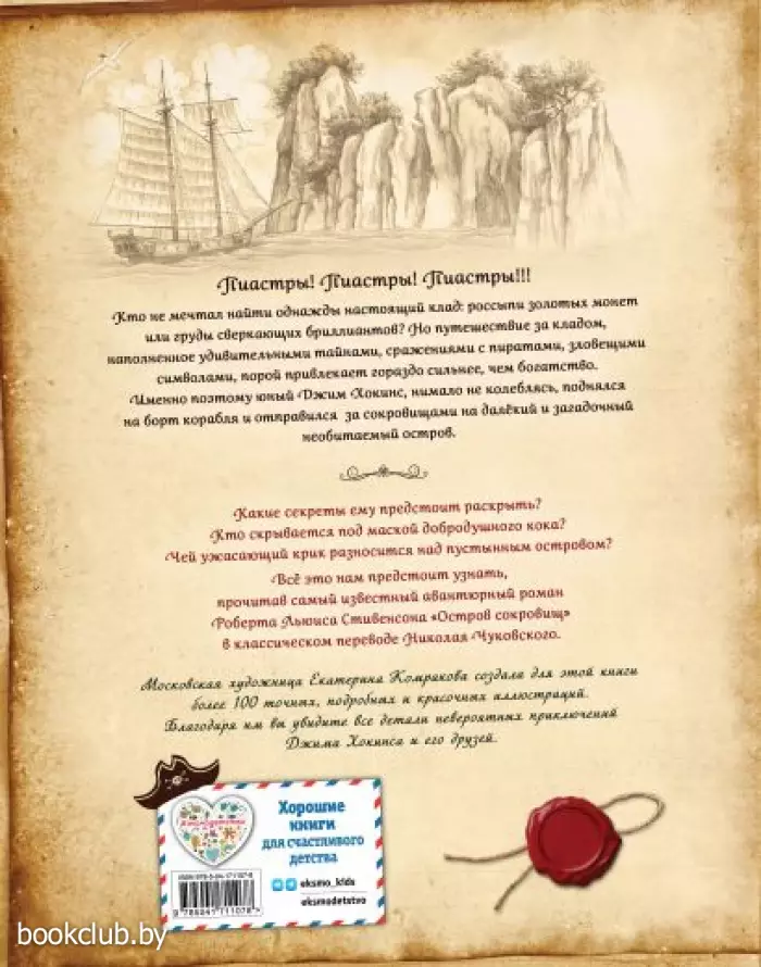 На протяжении десятилетий эта книга остаётся на пике популярности. В ней есть всё: загадки и тайны, коварные злодеи и благородные джентльмены, дальнее путешествие и экзотические пейзажи. И, разумеется, груды золота и драгоценностей!