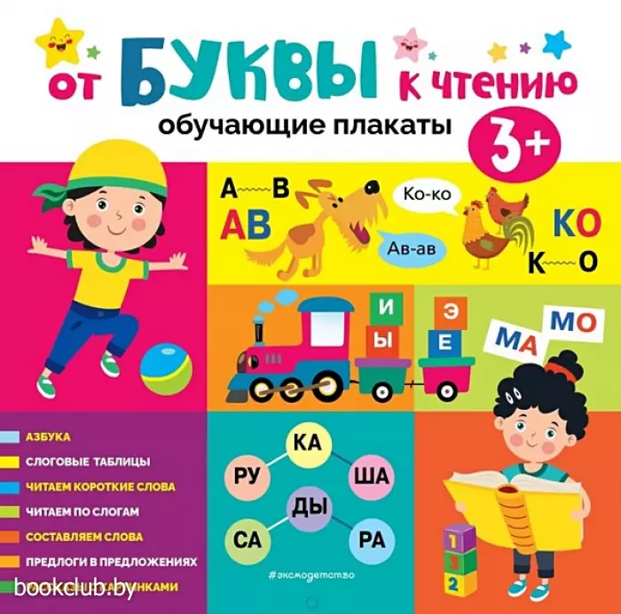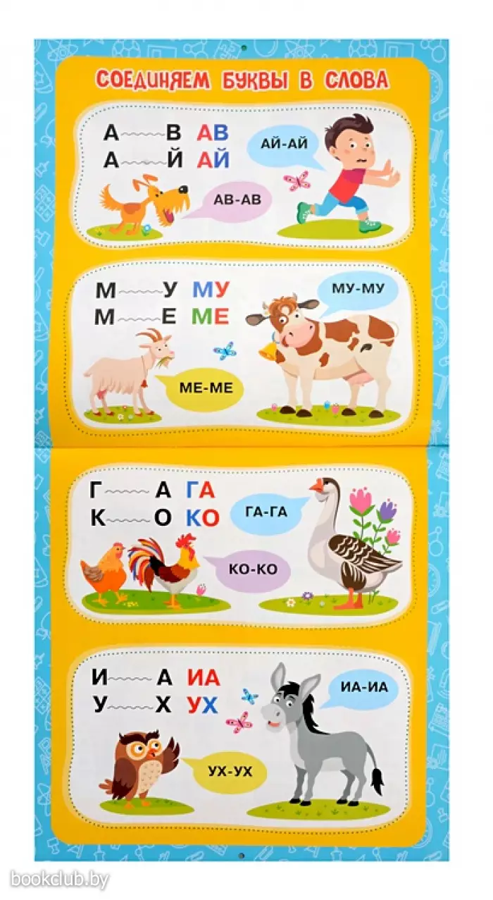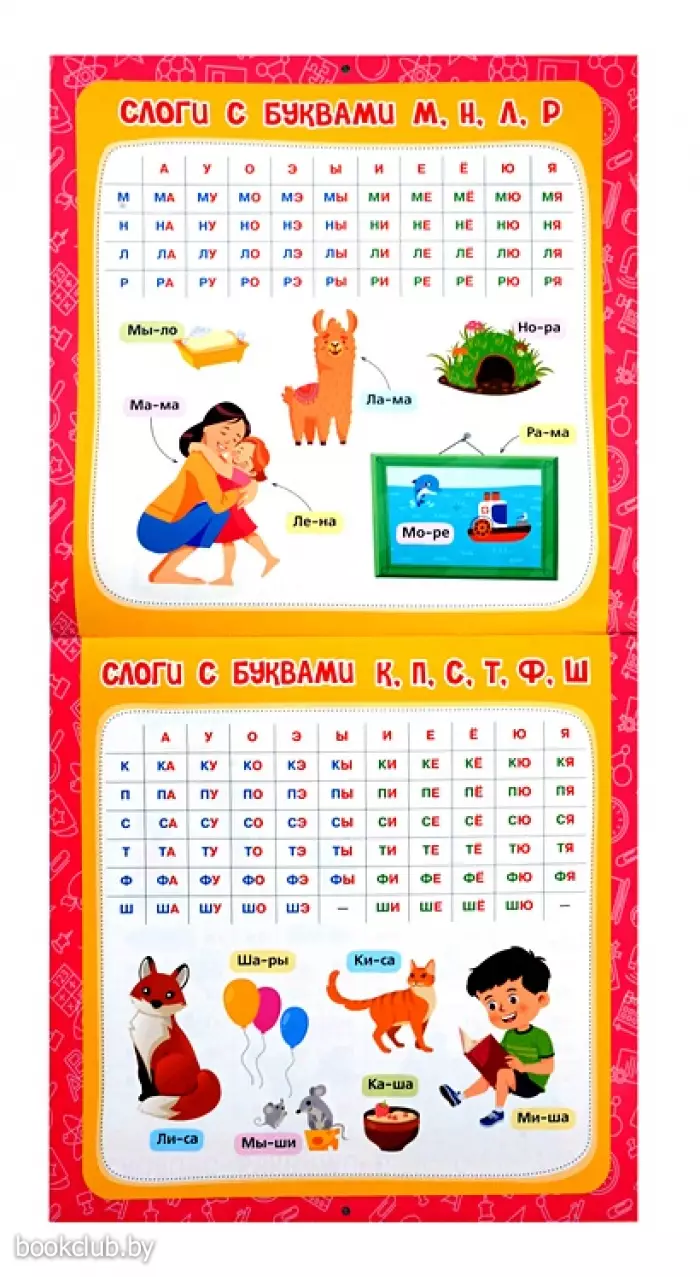 Необычное пособие в виде плакатов для обучения чтению — прекрасный подарок ребёнку. Конструкция альбома предполагает, что его можно повесить на стену наподобие календаря и менять плакаты по мере усвоения дошкольником материала. Яркие иллюстрации, крупные буквы и удобная структура альбома помогут ребёнку сначала научиться соединять буквы в слоги, короткие слова и читать по слогам. А затем он сможет без труда читать небольшие тексты. Учебный материал, необходимый будущему первокласснику, всегда будет перед глазами ребёнка. Это способствует его лучшему запоминанию. Обучающие плакаты можно использовать для оформления детской комнаты и в качестве наглядных пособий в детском саду. Пособие поможет сделать чтение любимым занятием вашего ребёнка.