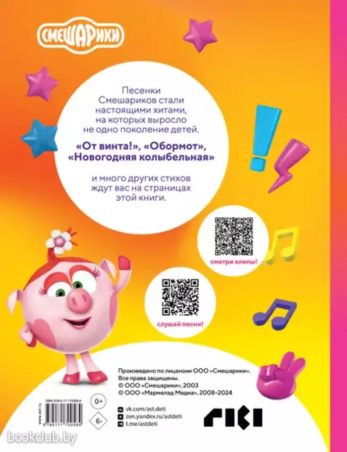 Песенки Смешариков стали настоящими хитами, на которых выросло не одно поколение детей. "От винта!", "Обормот", "Новогодняя колыбельная" и много других текстов ждут вас на страницах этой книги.