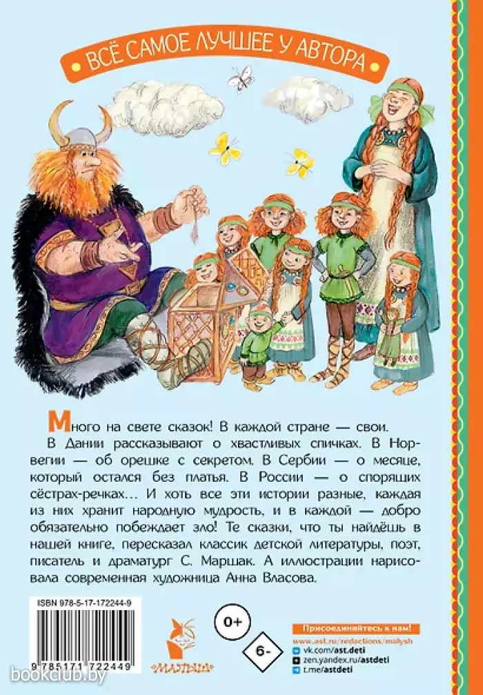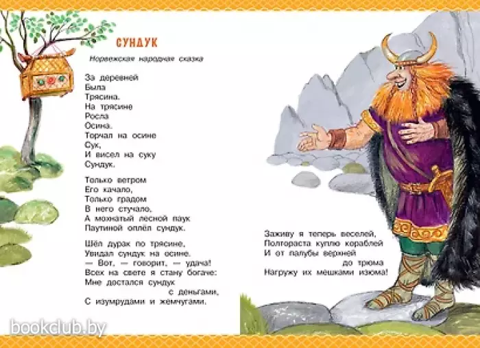 В книгу вошли сказки разных народах в стихотворном пересказе классика детской литературы, поэта, писателя и драматурга С. Маршака. Из книги ребята узнают, какие сокровища оказались в сундуке, что скрывает крепкий орешек, отчего у месяца нет платья и о чём спорили реки. Всего в книге более 20 сказок.