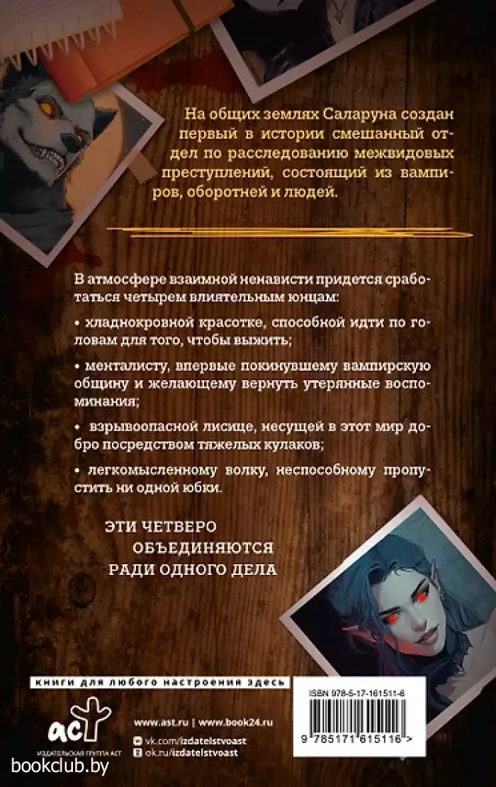 На общих землях Саларуна создан первый в истории смешанный отдел по расследованию межвидовых преступлений, состоящий из вампиров, оборотней и людей. В атмосфере взаимной ненависти придется сработаться четырем влиятельным юнцам: Хладнокровной красотке, способной идти по головам для того, чтобы выжить; Менталисту, впервые покинувшему вампирскую общину и желающему вернуть утерянные воспоминания; Взрывоопасной лисице, несущей в этот мир добро посредством тяжелых кулаков; Легкомысленному волку, неспособному пропустить ни одной юбки