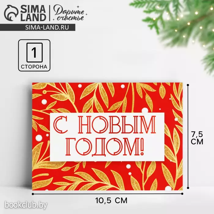Открытка-мини «С Новым годом!», золотая ботаника, 10,5 х7,5 см
