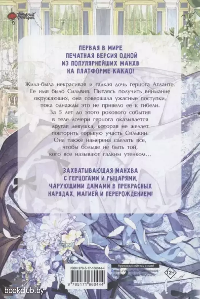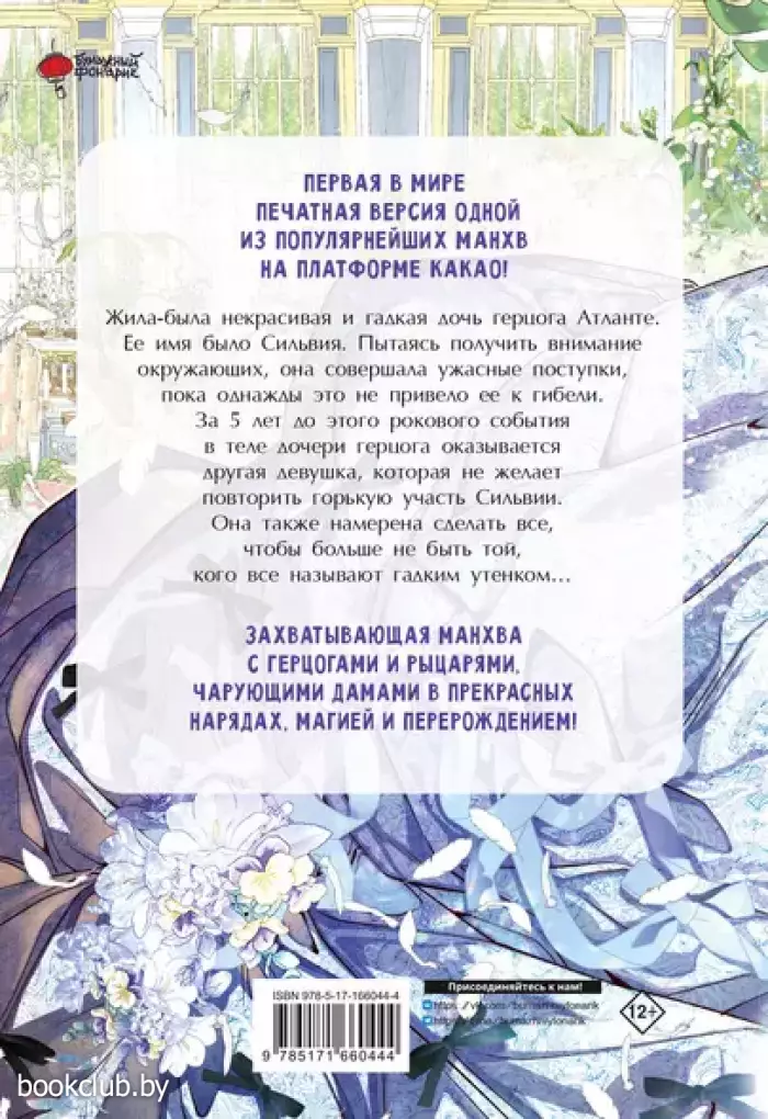 Одна из популярнейших манхв на платформе Kakao! Жила-была некрасивая и злая дочь герцога Атланте. Пытаясь обратить на себя внимание Сильвия совершала все более гнусные поступки, пока один из них не привел ее к гибели. За 5 лет до этого рокового события в теле дочери герцога оказывается другая девушка, которая совершенно не желает повторить ужасную судьбу своей предшественницы. Она смела и сообразительна, а также у нее остались воспоминания о грядущих годах и, что самое главное, — ее не беспокоит мнение других людей. Новая Сильвия Атланте страстно желает двух вещей — стать счастливой и не зависеть от своей семьи. Так начинается история той, кого все называли гадким утенком. Для широкого круга читателей.