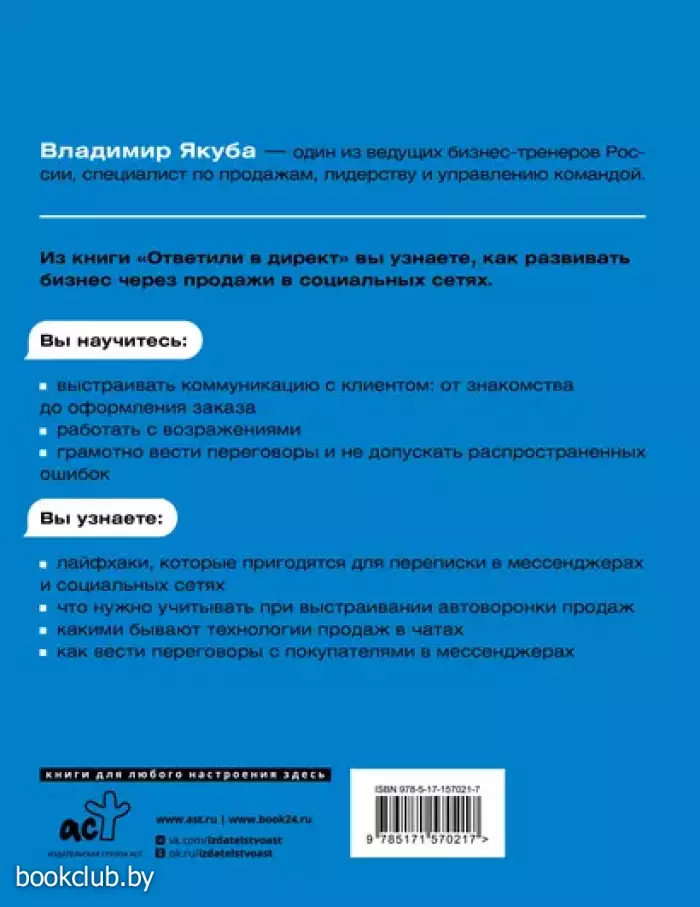 Владимир Якуба – один из ведущих бизнес-тренеров России, специалист по продажам, лидерству и управлению командой. Из книги «Ответили в директ» вы узнаете, как развивать бизнес через продажи в социальных сетях.