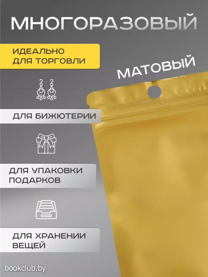 Пакет Зип-лок с окном, с еврослотом, золотой, 8х14 см