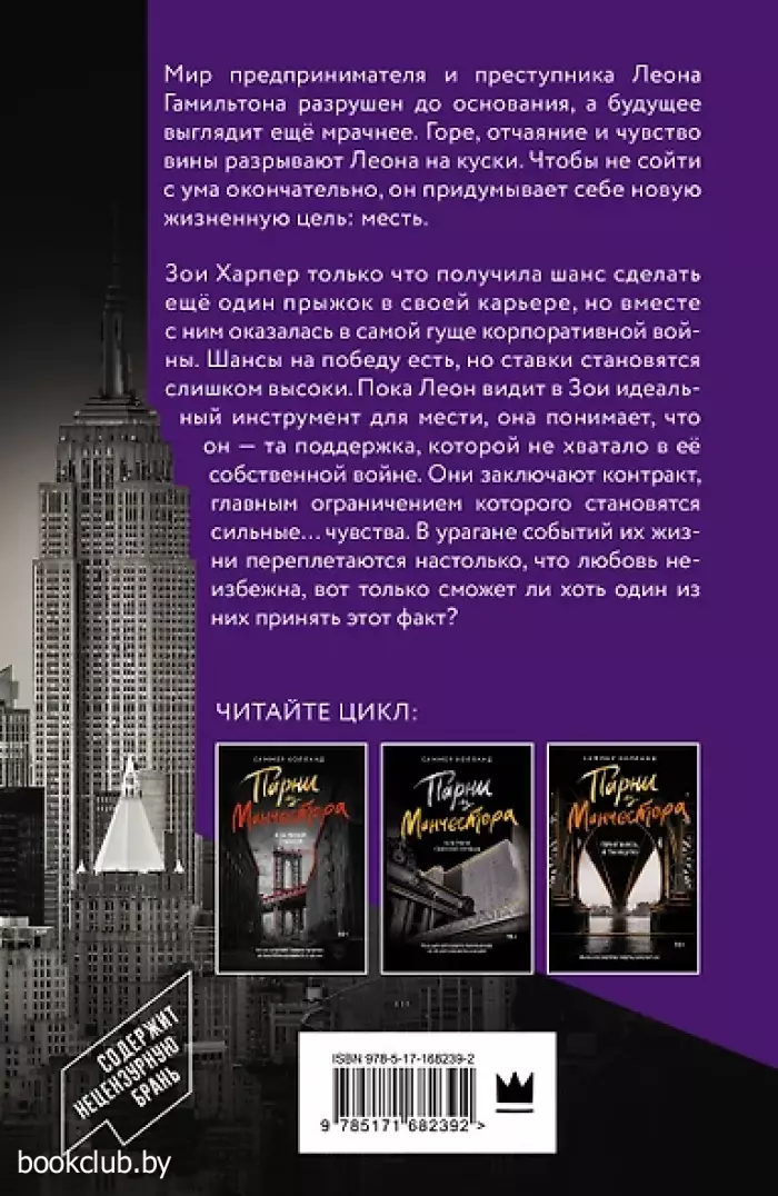 Мир предпринимателя и преступника Леона Гамильтона разрушен до основания, а будущее выглядит ещё мрачнее. Горе, отчаяние и чувство вины разрывают Леона на куски. Чтобы не сойти с ума окончательно, он придумывает себе новую жизненную цель: месть. Зои Харпер только что получила шанс сделать ещё один прыжок в своей карьере, но вместе с ним оказалась в самой гуще корпоративной войны. Шансы на победу есть, но ставки становятся слишком высоки. Пока Леон видит в Зои идеальный инструмент для мести, она понимает, что он — та поддержка, которой не хватало в её собственной войне. Они заключают контракт, главным ограничением которого становятся сильные… чувства. В урагане событий их жизни переплетаются настолько, что любовь неизбежна, вот только сможет ли хоть один из них принять этот факт?