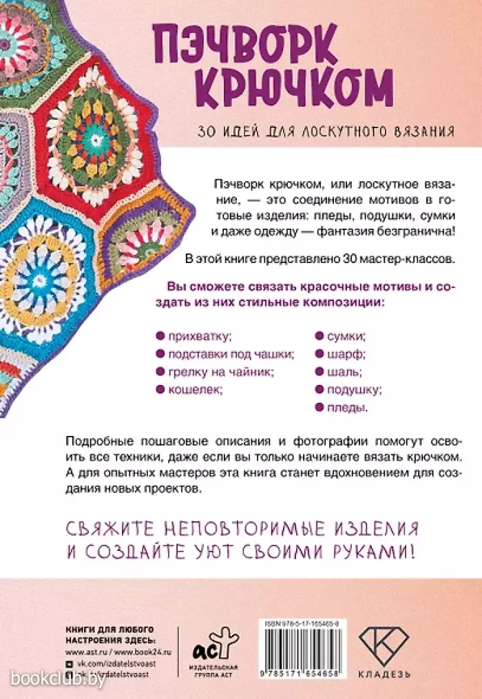 Подробные пошаговые описания и фотографии помогут освоить все техники, даже если вы только начинаете вязать крючком. А для опытных мастеров эта книга станет вдохновением для создания новых проектов. Книги издательства «АСТ» из серии «Мастера рукоделия» - отличное приобретение для вас и ваших близких. Для вашего удобства при оформлении заказа по телефону назовите код товара: 413179