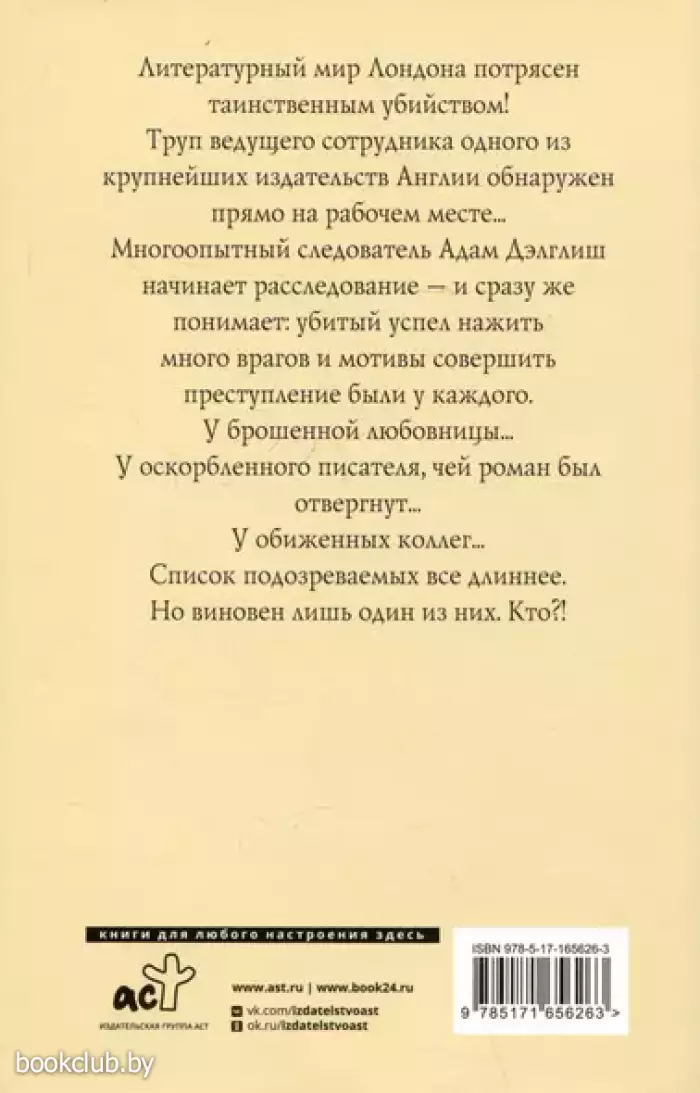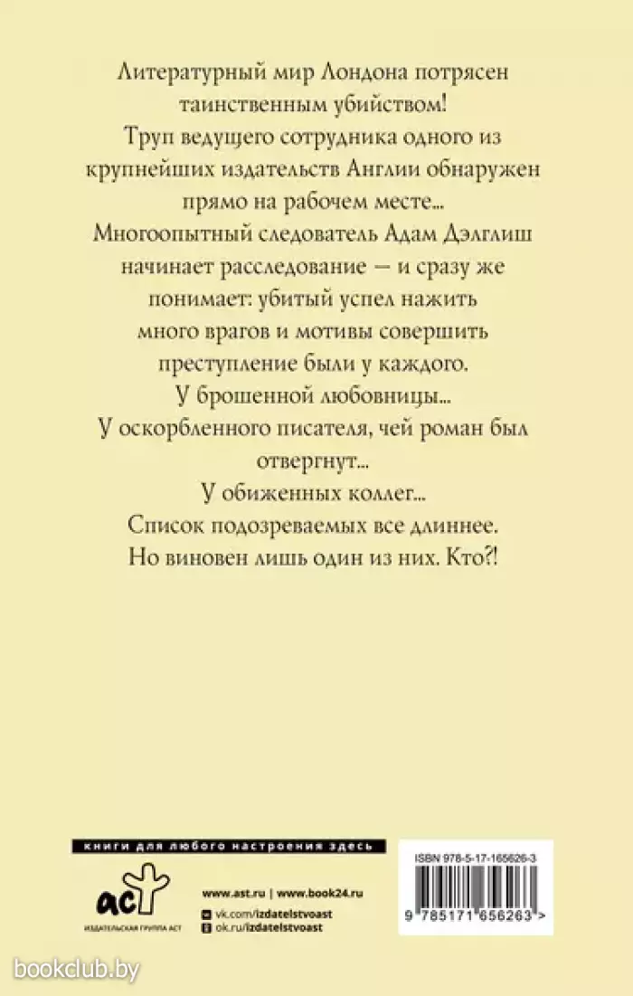 Литературный мир Лондона потрясен таинственным убийством! Труп ведущего сотрудника одного из крупнейших издательств Англии обнаружен прямо на рабочем месте… Многоопытный следователь Адам Дэлглиш начинает расследование — и сразу же понимает: убитый успел нажить много врагов и мотивы совершить преступление были у каждого. У брошенной любовницы… У оскорбленного писателя, чей роман был отвергнут… У обиженных коллег… Список подозреваемых — все длиннее. Но виновен лишь один из них. Кто?!