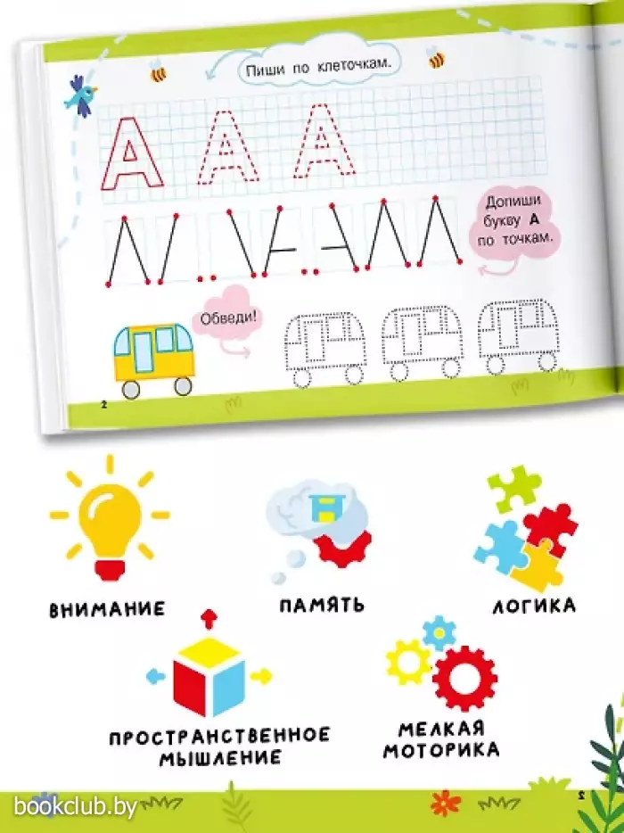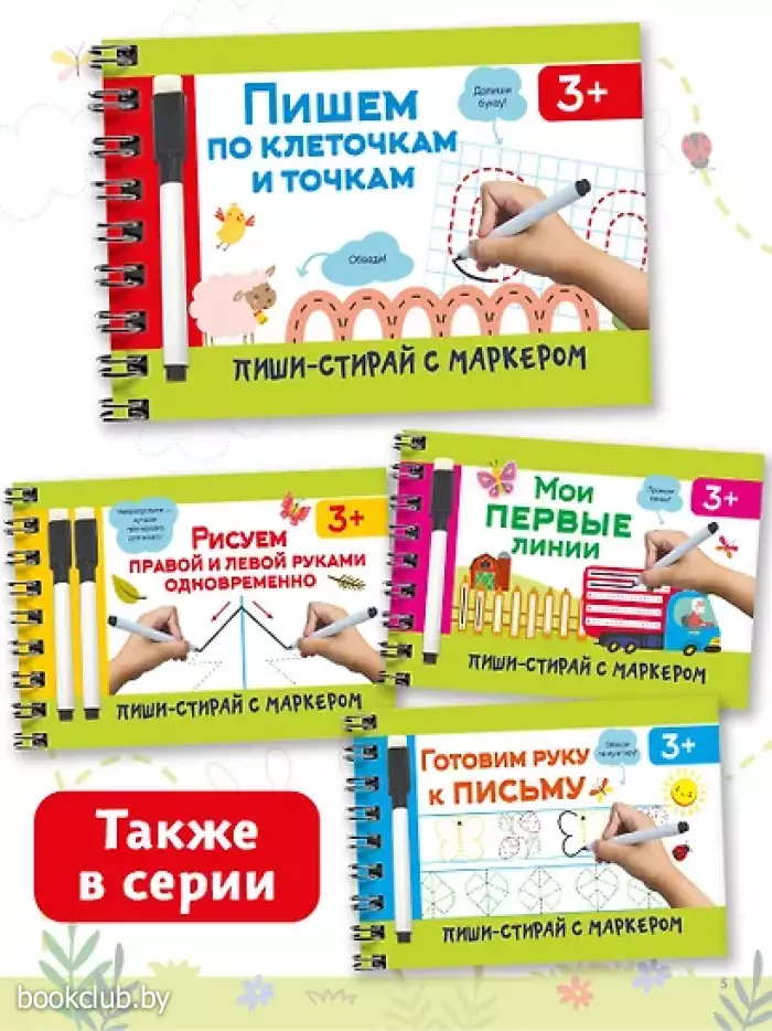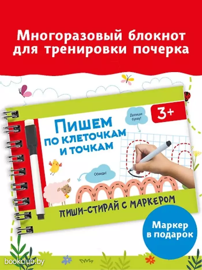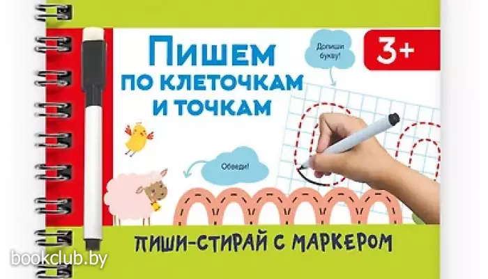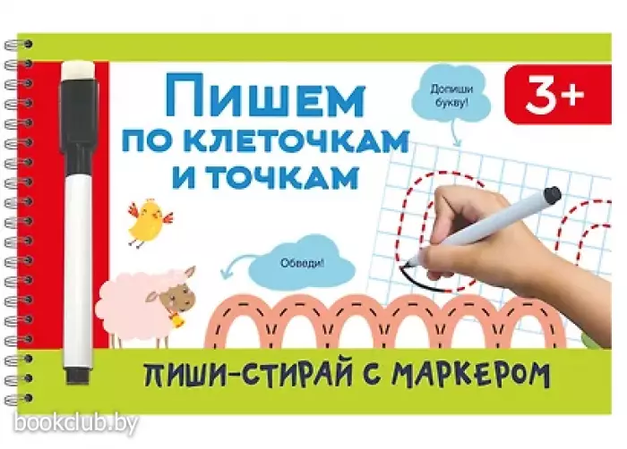 "Пишем по клеточкам и точкам" — многоразовый учебный блокнот на спирали удобного карманного формата для знакомства с буквами от А до Я, а также развития зрительной памяти, мелкой моторики, графических навыков, речи, внимания, логики, пространственного мышления. Ребёнок удивится и обрадуется — прямо в книге водным маркером можно обводить и писать буквы хоть 100 раз! А это значит — маленький ученик сможет писать и стирать, исправлять ошибки и снова начинать с чистого листа благодаря специальному маркеру, который идеально подходит для письма на ламинированных страницах. Это лучший вариант для подготовки руки к письму — ребёнок шаг за шагом сможет выработать аккуратный, правильный, красивый почерк.