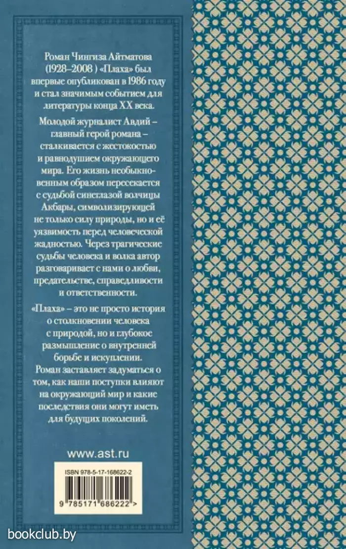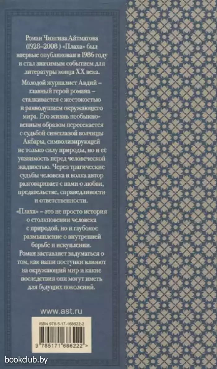Роман Чингиза Айтматова (1928— 2008) «Плаха» был впервые опубликован в 1986 году и стал значимым событием для литературы конца ХХ века. Молодой журналист Авдий — главный герой романа — сталкивается с жестокостью и равнодушием окружающего мира. Его жизнь необыкновенным образом пересекается с судьбой синеглазой волчицы Акбары, символизирующей не только силу природы, но и её уязвимость перед человеческой жадностью. Через трагические судьбы человека и волка автор разговаривает с нами о любви, предательстве, справедливости и ответственности. «Плаха» — это не просто история о столкновении человека с природой, но и глубокое размышление о внутренней борьбе и искуплении. Роман заставляет задуматься о том, как наши поступки влияют на окружающий мир и какие последствия они могут иметь для будущих поколений.