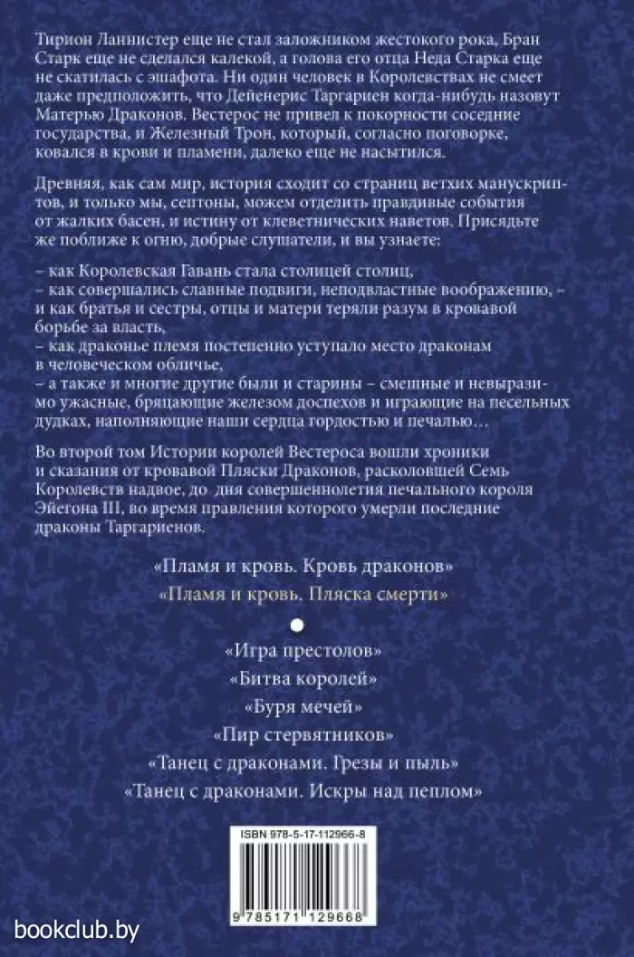 Тирион Ланнистер еще не стал заложником жестокого рока, Бран Старк еще не сделался калекой, а голова его отца Неда Старка еще не скатилась с эшафота. Ни один человек в Королевствах не смеет даже предположить, что Дейенерис Таргариен когда-нибудь назовут Матерью Драконов. Вестерос не привел к покорности соседние государства, и Железный Трон, который, согласно поговорке, ковался в крови и пламени, далеко еще не насытился. Древняя, как сам мир, история сходит со страниц ветхих манускриптов, и только мы, септоны, можем отделить правдивые события от жалких басен, и истину от клеветнических наветов.