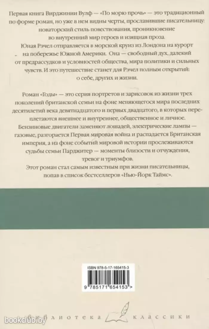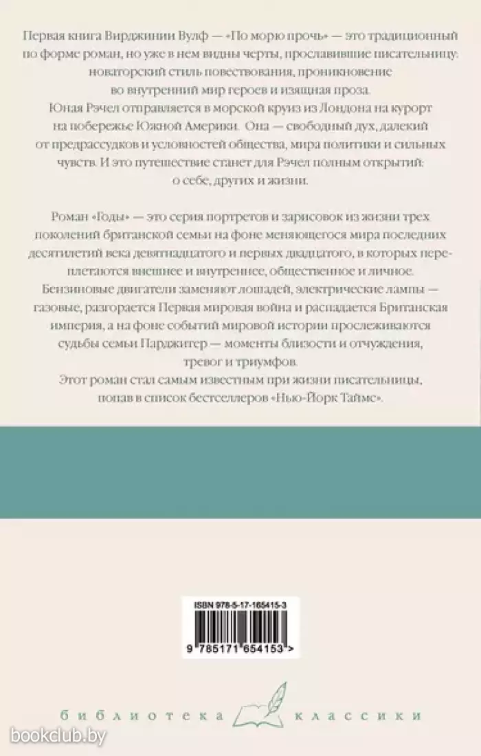 Первая книга Вирджинии Вулф — "По морю прочь" — это традиционный по форме роман, но уже в нем видны черты, прославившие писательницу: новаторский стиль повествования, проникновение во внутренний мир героев и изящная проза.