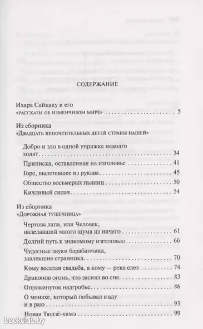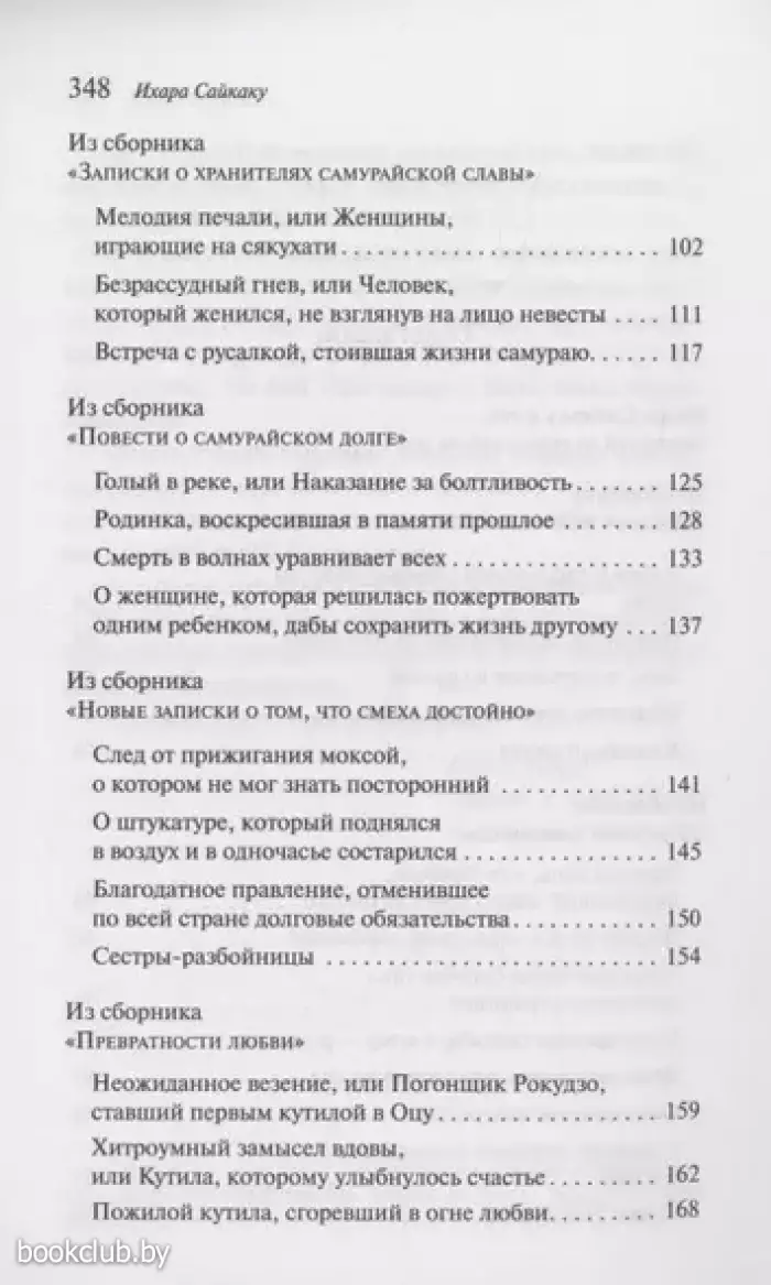 Жанровый диапазон творчества Сайкаку необычайно широк. В этой книге читатель найдет разные по характеру произведения – любовные, бытовые, волшебно-фантастические, судебные и другие. Ирония, сарказм, пародийный гротеск – излюбленные приемы автора, но в смехе его слышна печаль о превратности жизни и человеческой судьбы.