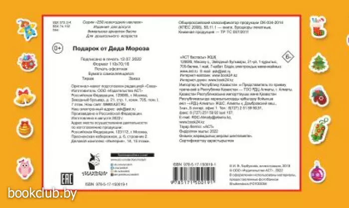Книга от издательства «АСТ», входящая в серию «250 новогодних наклеек», принесет массу положительных впечатлений от прочтения и займет достойное место в вашей библиотеке. Для вашего удобства при оформлении заказа по телефону назовите код товара: 188245