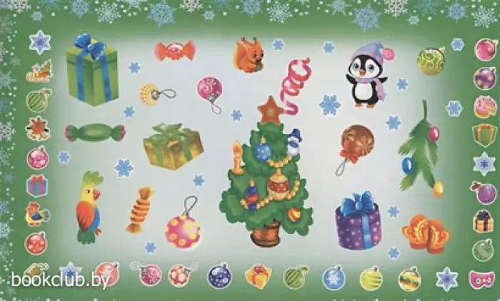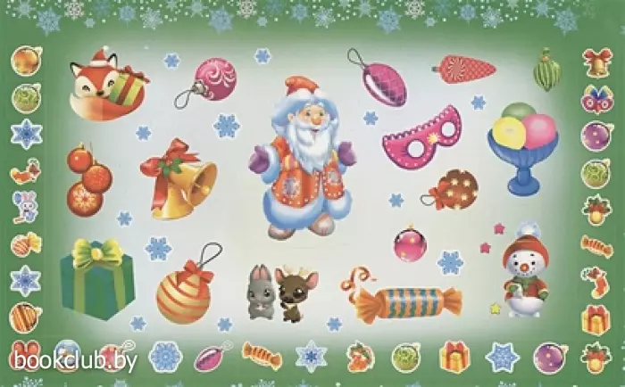 Новогодние игрушки, ёлка, подарки, карнавальные маски и весёлые зверушки — это далеко не весь перечень красочных наклеек этого набора для создания настоящих шедевров своими руками.