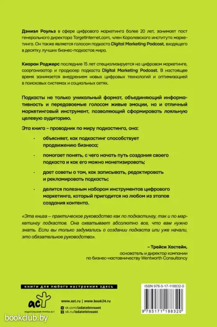 «Эта книга – практическое руководство как по подкастингу, так и по маркетингу подкастов. Она охватывает абсолютно все, что вам нужно знать. Если вы только задумались о создании подкаста или уже начали, это обязательное руководство».