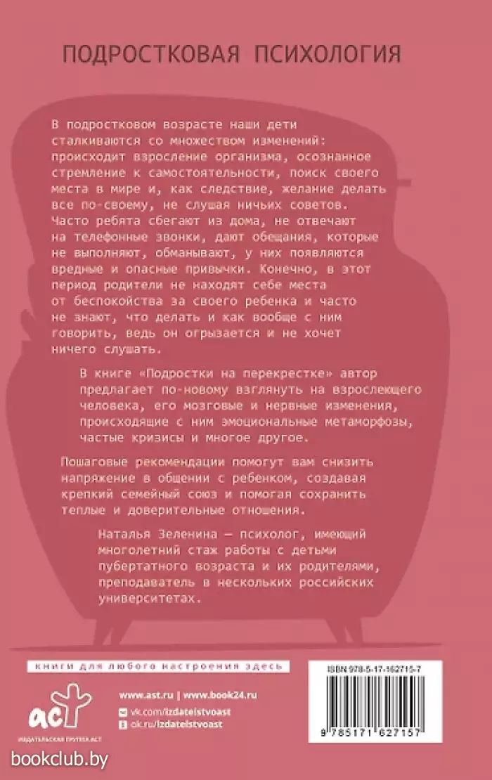 Книги издательства «АСТ» из серии «Подростковая психология» - отличное приобретение для вас и ваших близких. Для вашего удобства при оформлении заказа по телефону назовите код товара: 414326