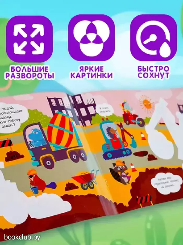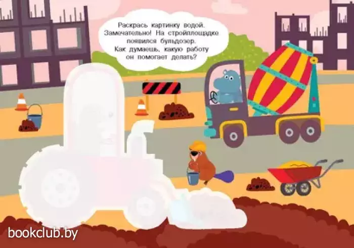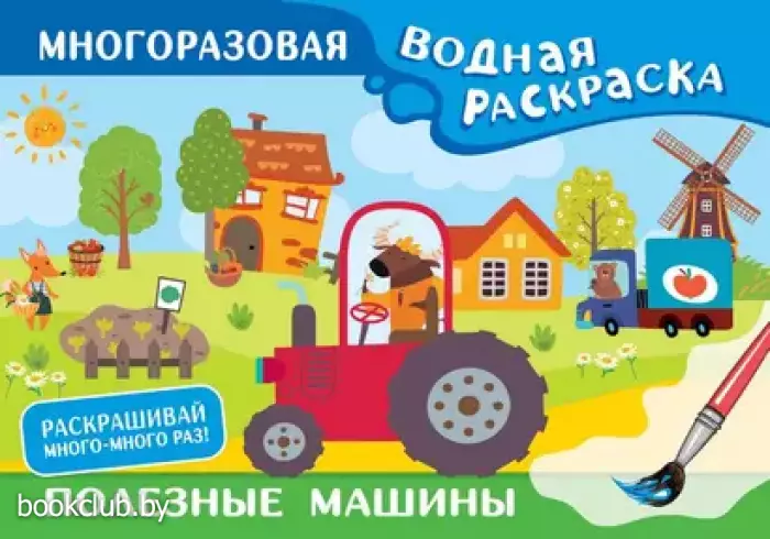 "Полезные машины" — не обычная раскраска, а волшебная книжка для юных художников. Мальчики узнают, что рисовать и раскрашивать можно не только карандашами, фломастерами или красками, но и водой. Проведёшь мокрой кисточкой по бумаге — и перед тобой яркая картинка. Когда вода высохнет, рисунок снова станет чёрно-белым, и его можно будет раскрашивать заново!