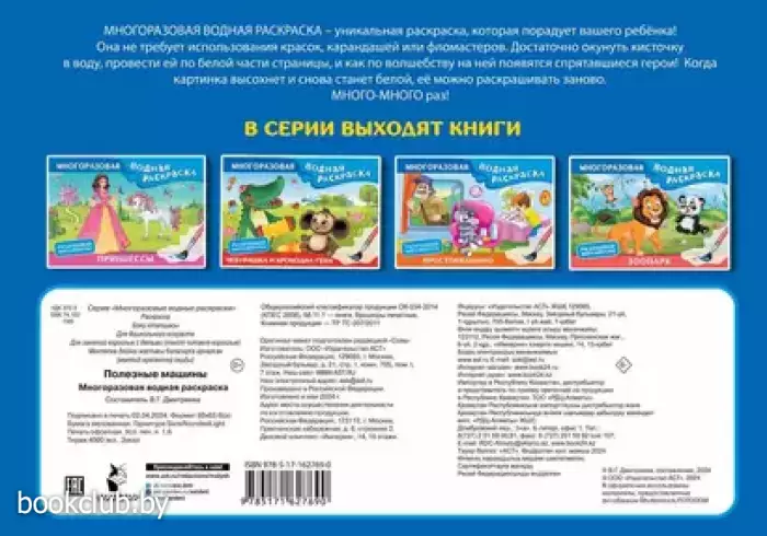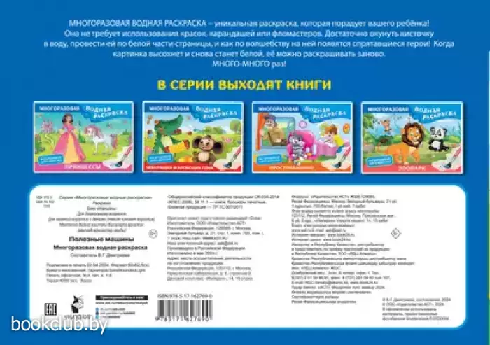 Книги издательства «АСТ» из серии «Многоразовые водные раскраски. АСТ» - отличное приобретение для вас и ваших близких. Для вашего удобства при оформлении заказа по телефону назовите код товара: 409174
