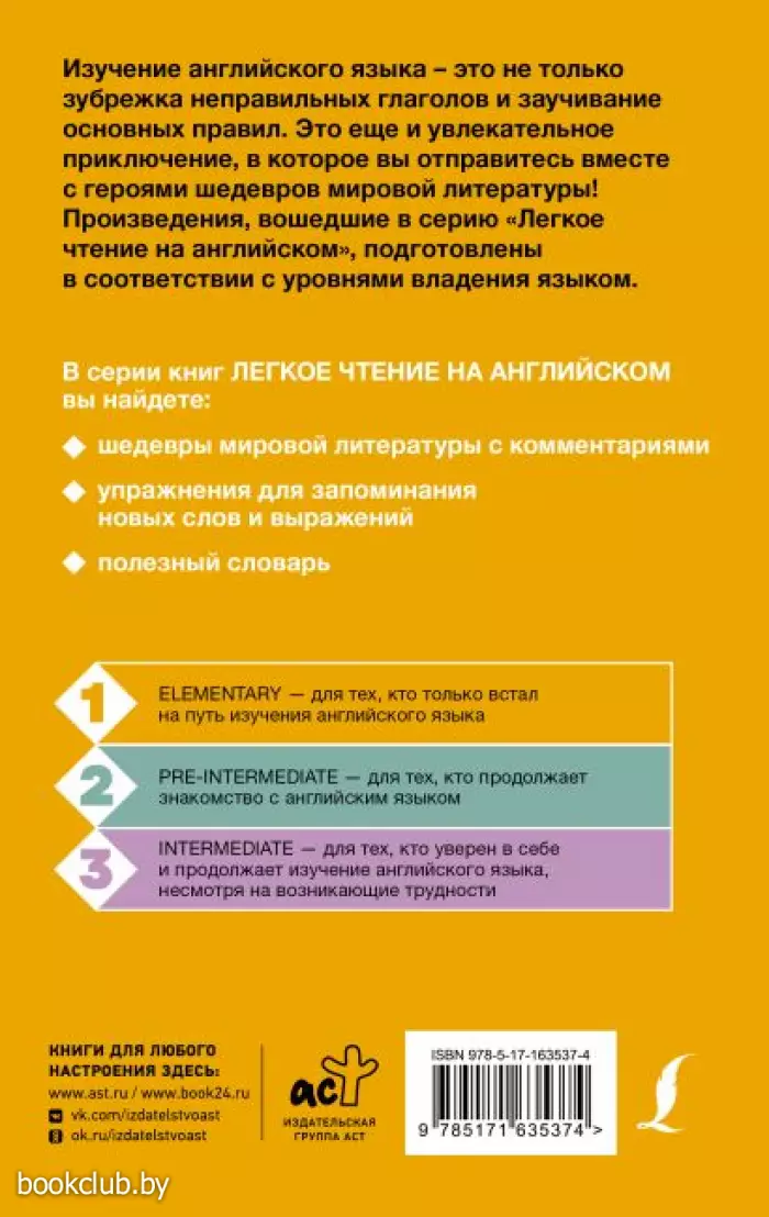 Книги издательства «АСТ» из серии «Легкое чтение на английском» - отличное приобретение для вас и ваших близких. Для вашего удобства при оформлении заказа по телефону назовите код товара: 401682