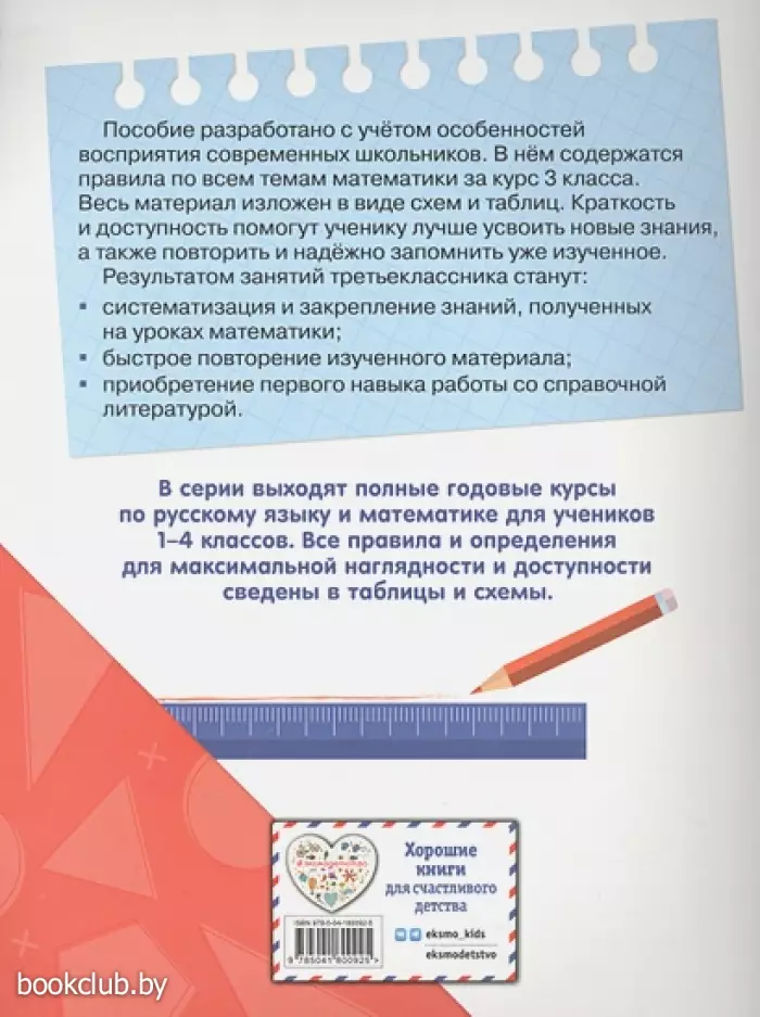 Справочники для учеников начальной школы должны быть краткими и понятными. В данном пособии предельно доступно, в виде таблиц и схем, изложен весь курс математики за 3 класс. Такая подача материала делает процесс поиска и запоминания информации максимально быстрым и лёгким. Современное и удобное в использовании пособие полностью соответствует всем требованиям ФГОС начального общего образования.