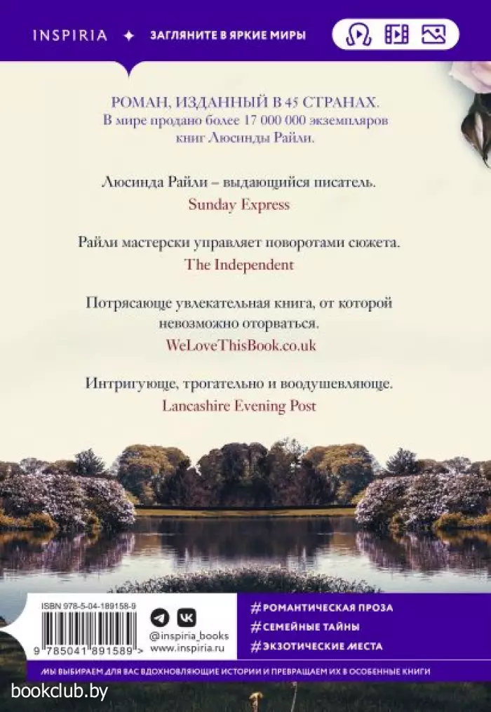Книги издательства «ЭКСМО» из серии «Novel. Мировые хиты Люсинды Райли» станут прекрасным дополнением вашей библиотеки. Для вашего удобства при оформлении заказа по телефону назовите код товара: 188620