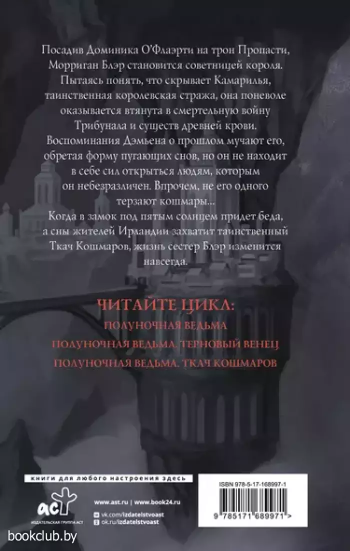 Посадив Доминика О’Флаэрти на трон Пропасти, Морриган Блэр становится советницей короля. Пытаясь понять, что скрывает Камарилья, таинственная королевская стража, она поневоле оказывается втянута в смертельную войну Трибунала и существ древней крови. Воспоминания Дэмьена о прошлом мучают его, обретая форму пугающих снов, но он не находит в себе сил открыться людям, которым он небезразличен. Впрочем, не его одного терзают кошмары… Когда в замок под пятым солнцем придет беда, а сны жителей Ирландии захватит таинственный Ткач Кошмаров, жизнь сестер Блэр изменится навсегда.