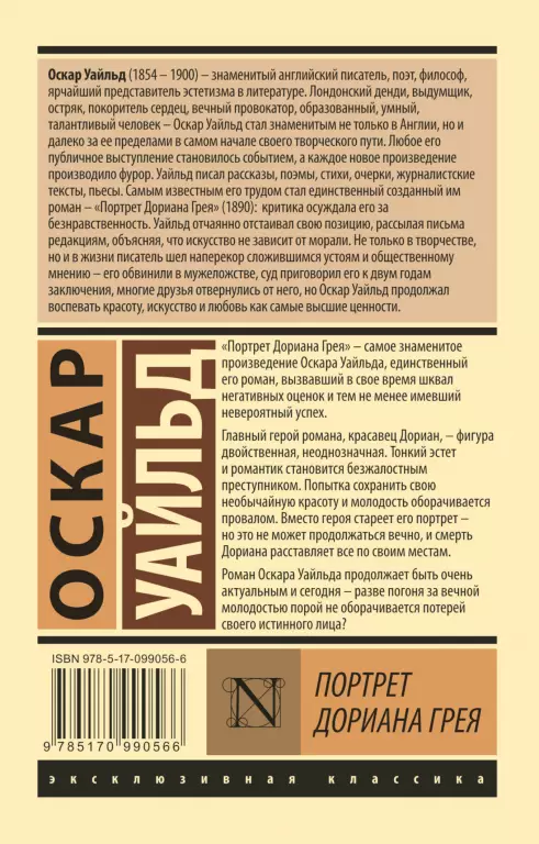 «Портрет Дориана Грея» — самое знаменитое произведение Оскара Уайльда, единственный его роман, вызвавший в свое время шквал негативных оценок и тем не менее имевший невероятный успех.