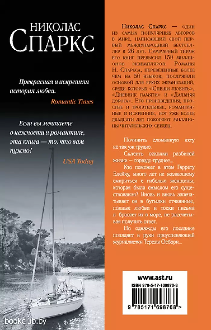 Починить сломанную яхту не так уж трудно. Склеить осколки разбитой жизни – гораздо труднее… Кто поможет в этом Гаррету Блейку, много лет не желающему смириться с гибелью женщины, которая была смыслом его существования? Вновь и вновь запечатывает он в бутылки отчаянные, полные любви и тоски письма и бросает их в море, не рассчитывая получить ответ. Но однажды его послание попадает в руки преуспевающей журналистки Терезы Осборн…