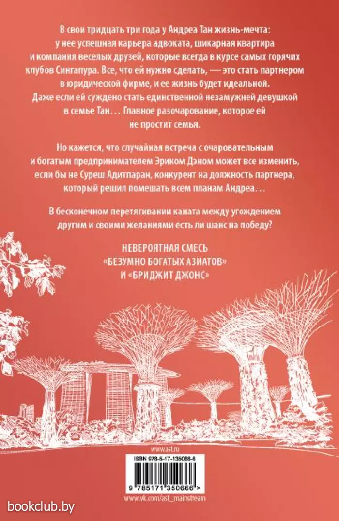 В свои тридцать три года у Андреа Тан жизнь-мечта: у нее успешная карьера адвоката, шикарная квартира и компания веселых друзей, которые всегда в курсе самых горячих клубов Сингапура. Все, что ей нужно сделать, — это стать партнером