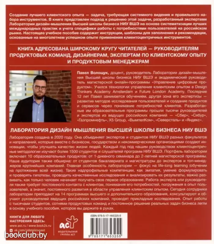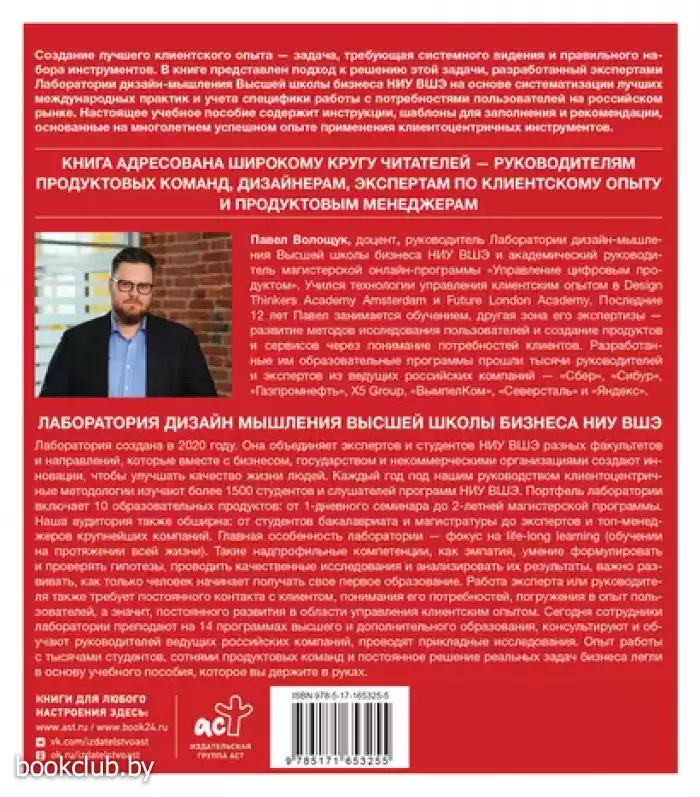 Создание лучшего клиентского опыта — задача, требующая системного видения и пра- вильного набора инструментов. В книге представлен подход к решению этой задачи, разра- ботанный экспертами Лаборатории дизайн-мышления Высшей школы бизнеса ВШЭ на основе систематизации лучших международных практик и c учетом специфики работы с потребностя- ми пользователей на российском рынке. Настоящее учебное пособие содержит инструкции, шаблоны для заполнения и рекомендации, основанные на многолетнем успешном опыте применения клиентоцентричных инструментов. Книга адресована широкому кругу читателей — руководителям продуктовых команд, дизайнерам, экспертам по клиентскому опыту и продуктовым менеджерам.