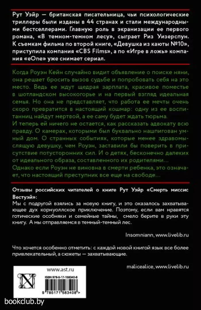 Книга от издательства «Neoclassic», входящая в серию «Психологический триллер», принесет массу положительных впечатлений от прочтения и займет достойное место в вашей библиотеке. Для вашего удобства при оформлении заказа по телефону назовите код товара: 190094