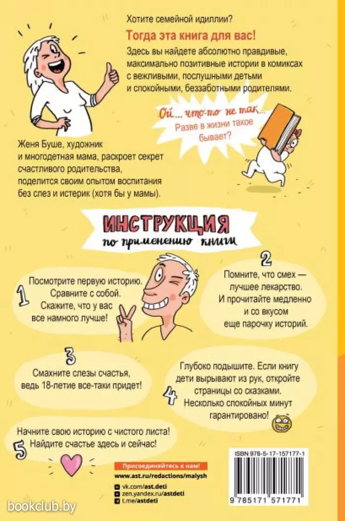 В чем секрет родительского счастья? Существует ли семейная идиллия? Женя Буше, художник, блогер и многодетная мама делится своим опытом выживания в декрете и воспитания без слез и истерик (хотя бы у мамы). Юмористические антистресс-истории помогут вам взглянуть на привычные ситуации по-новому, от души посмеяться и обрести гармонию в семье и внутри себя. Позитивные и правдивые комиксы о семейных буднях станут отличным вариантом для чтения в отпуске или перерывах между сном ребенка и подойдут в качестве подарка на годовщину, день рождение, свадьбу. Рисование в стиле популярных французских комиксов не оставит вас равнодушным, станет украшением вашей библиотеки, коллекции книг по искусству.